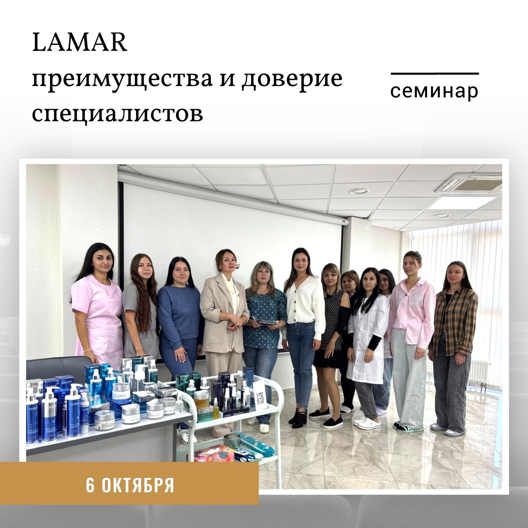 Тренер-Васильева Ирина Анатольевна познакомила косметологов с российским брендом и его большим ассортиментом линий и средств по уходу за кожей лица и тела. Отличительной чертой семинаров данного бренда является возможность протестировать профессиональную продукцию, оценить текстуру и ароматы средств.