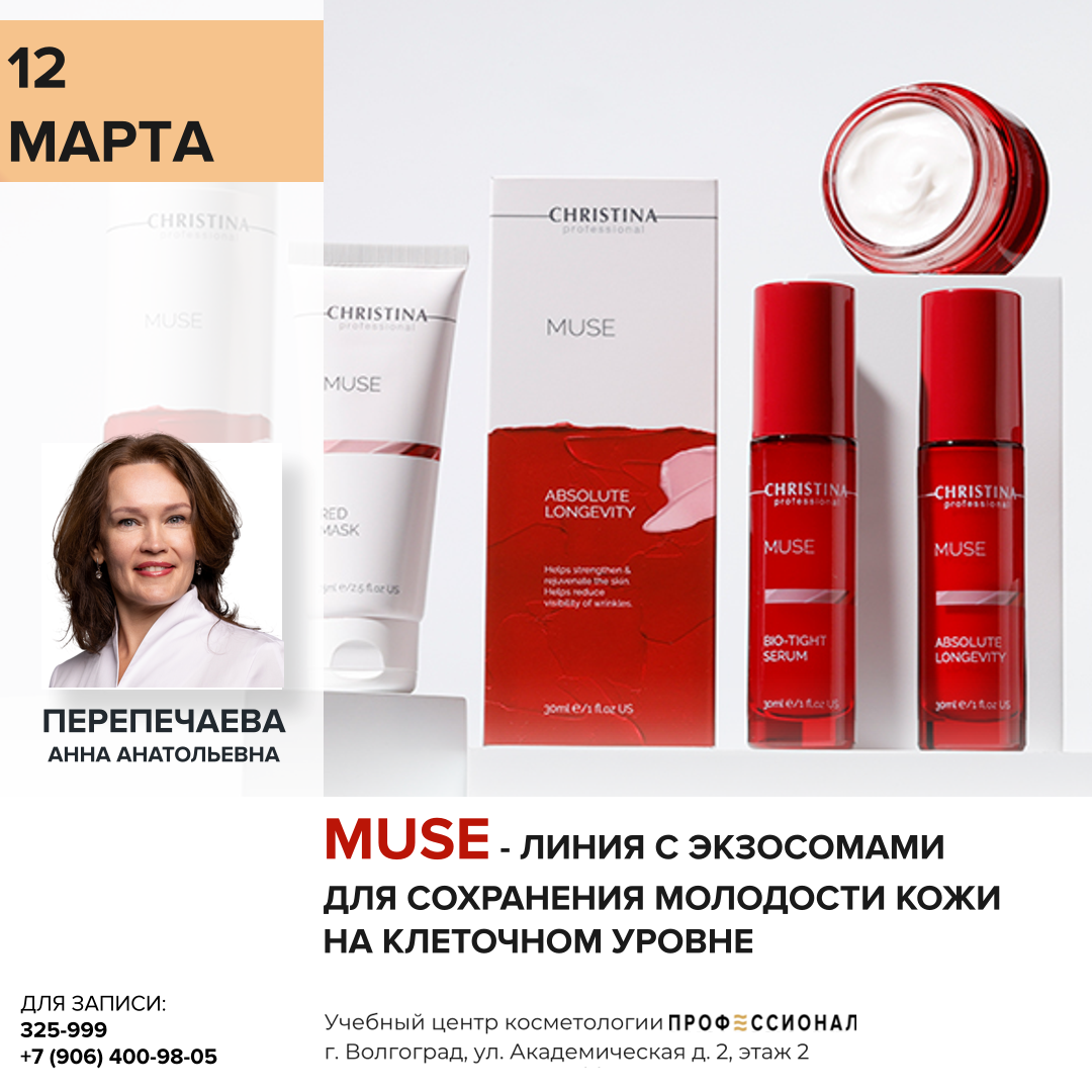 Обновленная линия Christina MUSE — это высокотехнологичный anti-age уход действующий на причины старения, а не только на симптомы. Уход использующий экзосомы для клеточного омоложения, повышения упругости и восстановления защитного барьера кожи. Комбинируя экзосомы с экстрактом альпийской розы, линия активно борется с признаками усталости, пигментацией и морщинами.
